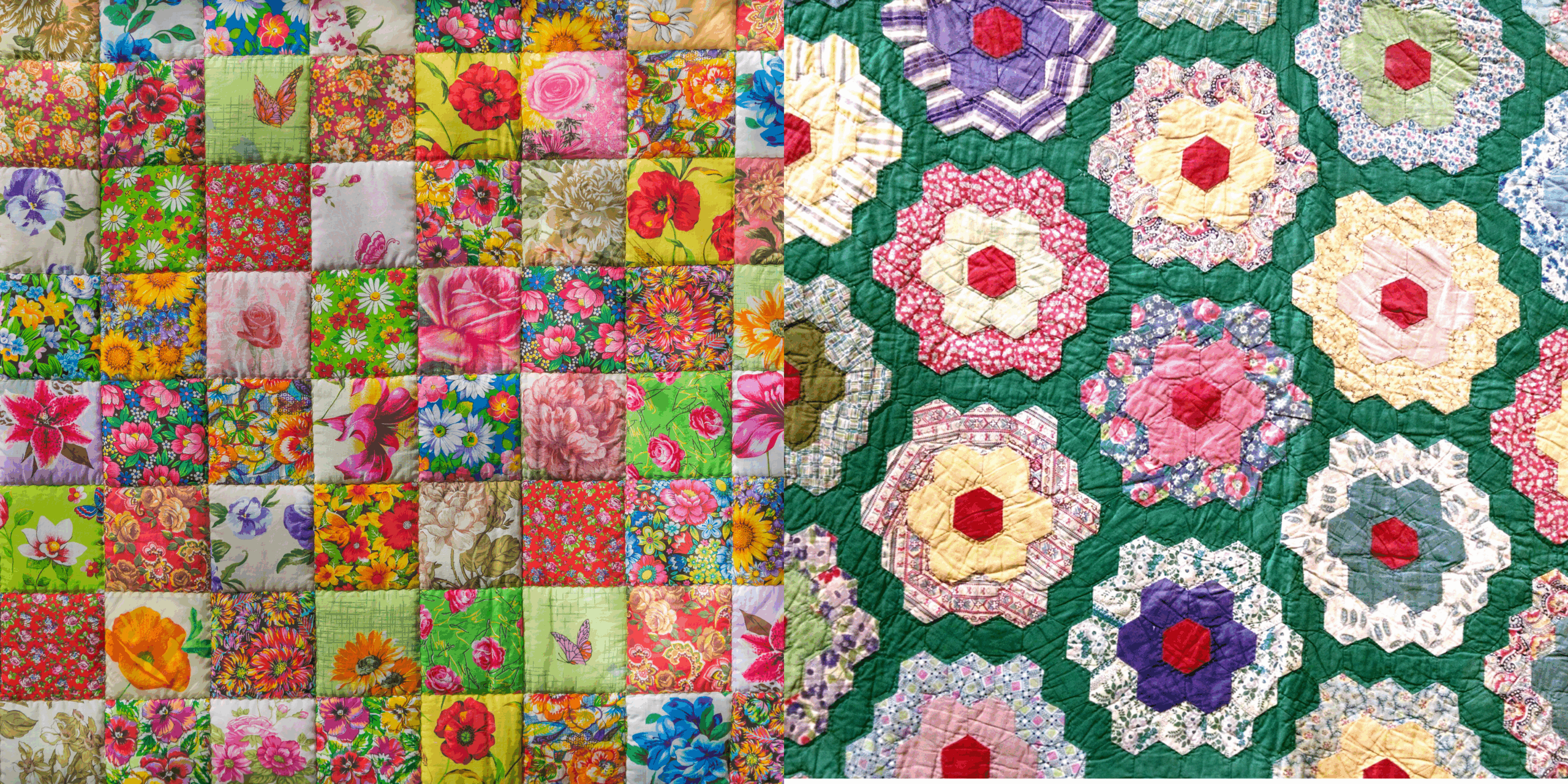 - De bovenlaag (vaak gemaakt van patchwork of appliqué),